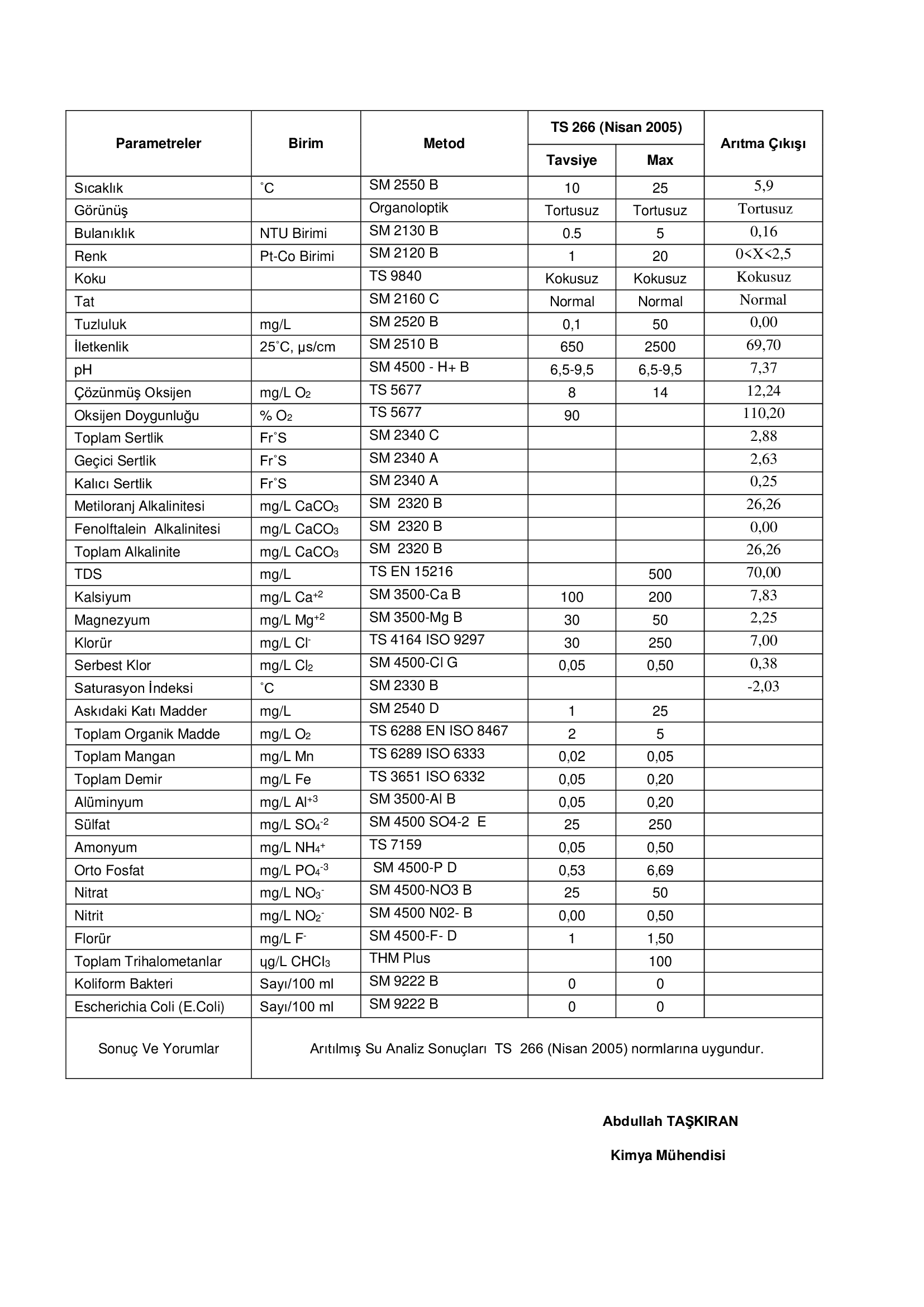 31/01/2026 Detaylı Fiziksel ve Kimyasal Analiz Raporu